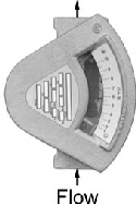 ERDCO See-FloŽ meters indicate flow rate and permit visual inspection of water for general purpose industrial service. The wedge shape of the meter housing makes 3200 See-Flo practically self-cleaning. Where periodic maintenance might be necessary, the tempered glass window is easily removed and replaced. Because of its large internal cavities this product will not plug up like the old glass tube "rotameters".